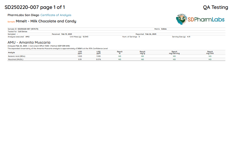 Best mushroom chocolate I’ve tried hands down. The candy in the milk chocolate makes it taste like a fun, elevated Crunch bar or something similar — so addictive! Smooth texture, no mushroom flavor at all, and the effects were perfect for a chill evening unwind. Highly recommend!